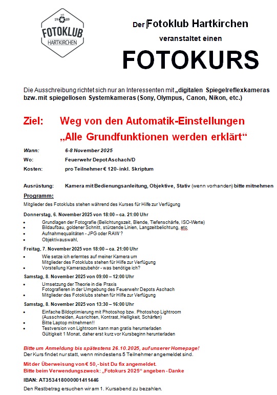 Nächster Klubabend ist am 20.10.25 um 19:30 Uhr im Hartrium.